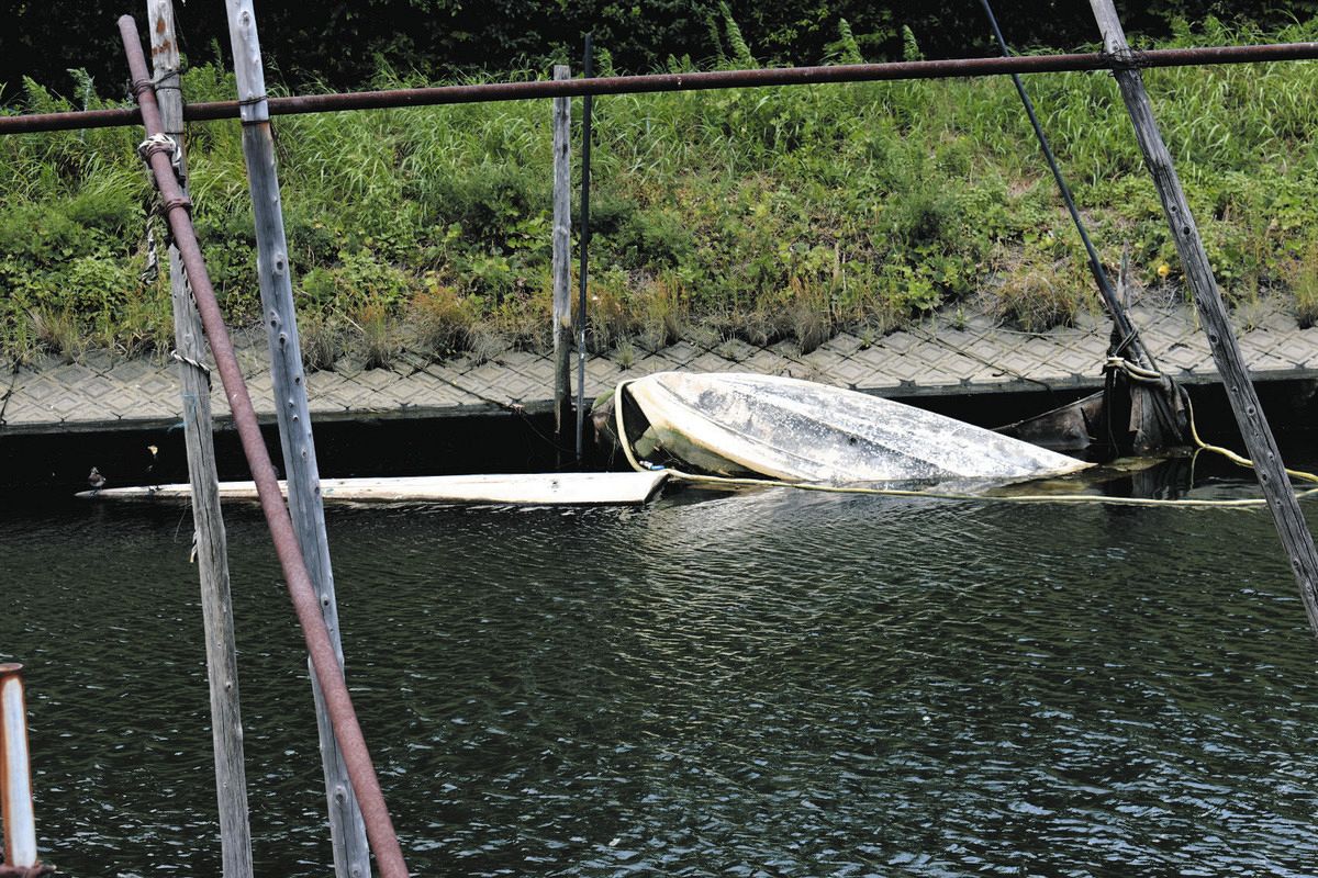 「もうずっと、こんな感じ。沈んでほったらかしのままのもあるし、持ち主が片付けてくれればありがたいけどねぇ」
