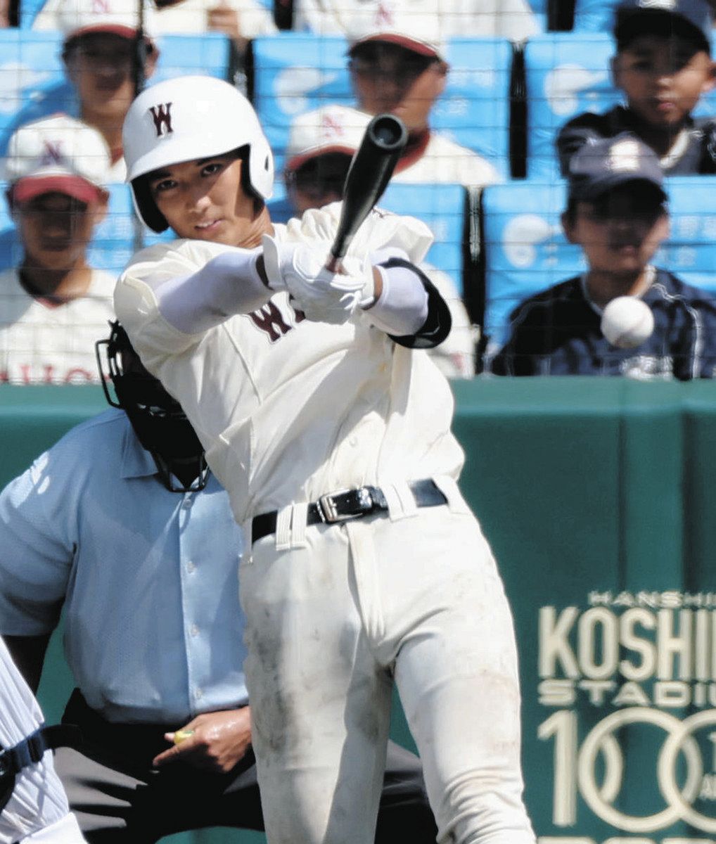 2点を追う二回表、山中晴翔捕手(2年)と灘本塁選手(同)の安打などで2死満塁の好機をつくり、打席には攻守でチームを引っ張る宇野真仁朗主将(3年)。ファウルで粘り、10球目に甘く入ったスライダーを見逃さなかった。振り抜いた当たりは左翼フェンスに直撃。あわや本塁打という二塁打で走者一掃し、逆転した。