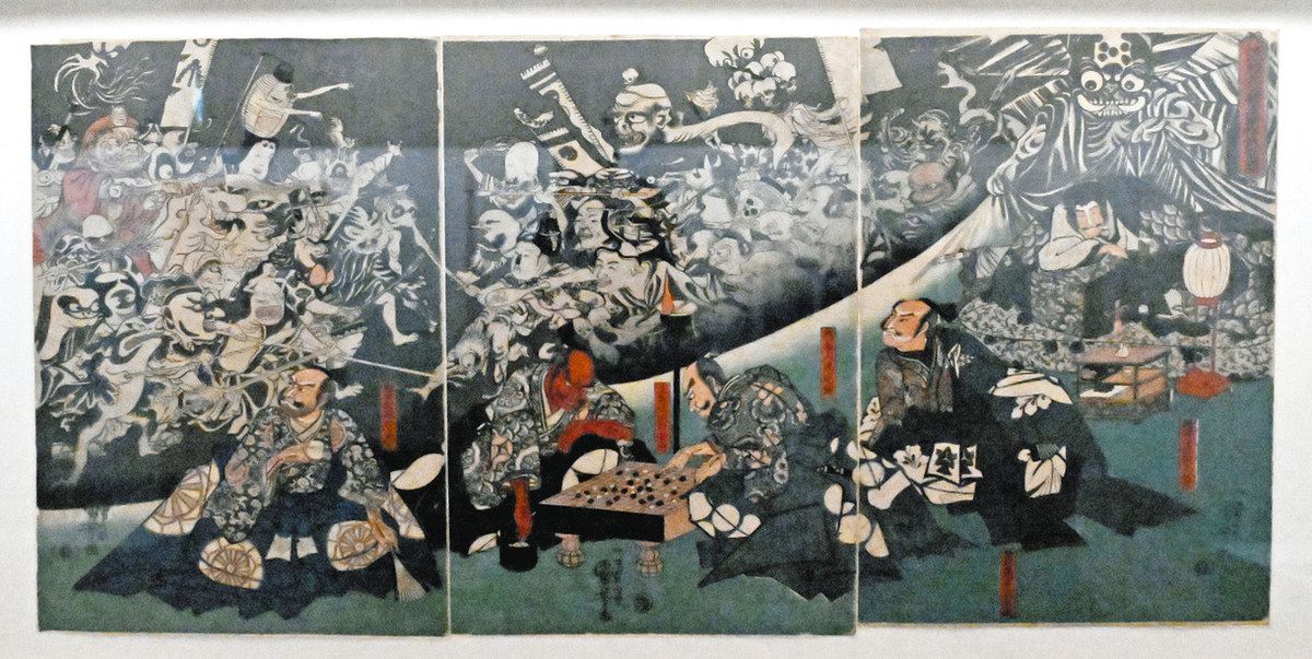 人間に襲いかかろうとする不気味な妖怪や、恨みを晴らそうと恐ろしい形相でにらみ付ける幽霊-。浮世絵に登場するさまざまなお化けの姿に、背筋がぞくっとした。