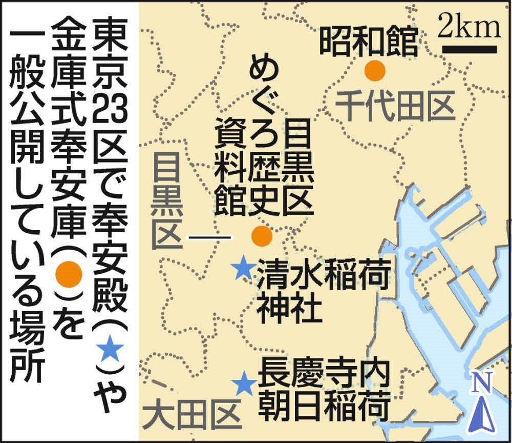 戦後、連合国軍総司令部(GHQ)の指令に基づく文部省(当時)の通達で撤去が進んだが、「神社様式の建築が多かった奉安殿の中には神社に転用されて残ったものがある」と、めぐろ歴史資料館の篠原佑典研究員(27)は説明する。23区では他に、大田区東雪谷の長慶寺の境内に朝日稲荷として現存している。