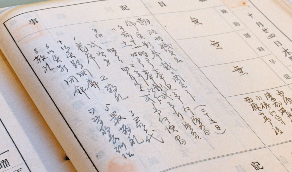 奉安殿や奉安庫は戦時下には極めて神聖な存在だった。学校職員は異常がないかを毎日確認し、様子を記録した。原町小の1940年の学校日誌には、御真影が届く日の式典の予行演習について記され、「最敬礼」などと書かれている。