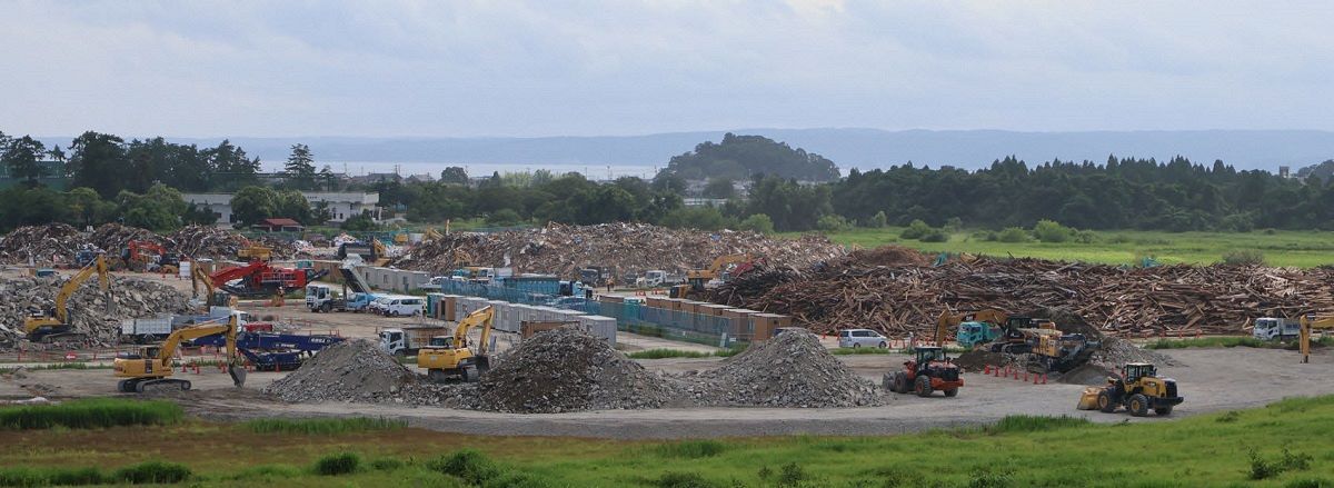 能登半島地震で発生した災害廃棄物の仮置き場=7月、石川県珠洲市蛸島町(後藤仁撮影)