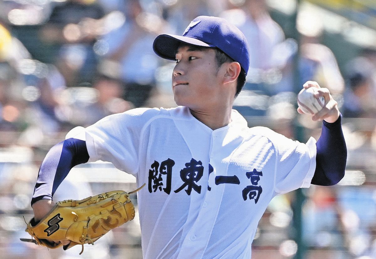 京都国際戦に先発した関東第一・畠中=23日、甲子園球場で(中嶋大撮影)