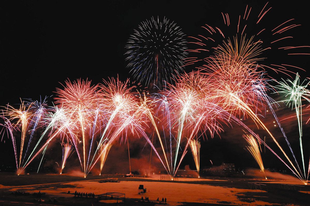 打ち上げを担当したのは同区東小松川の「宗家花火鍵屋」。花火大会は例年、8月の第1土曜日に開いていたが、15代目当主天野安喜子さんがパリ五輪に派遣され柔道の審判員を務めたため、日程を変更した。