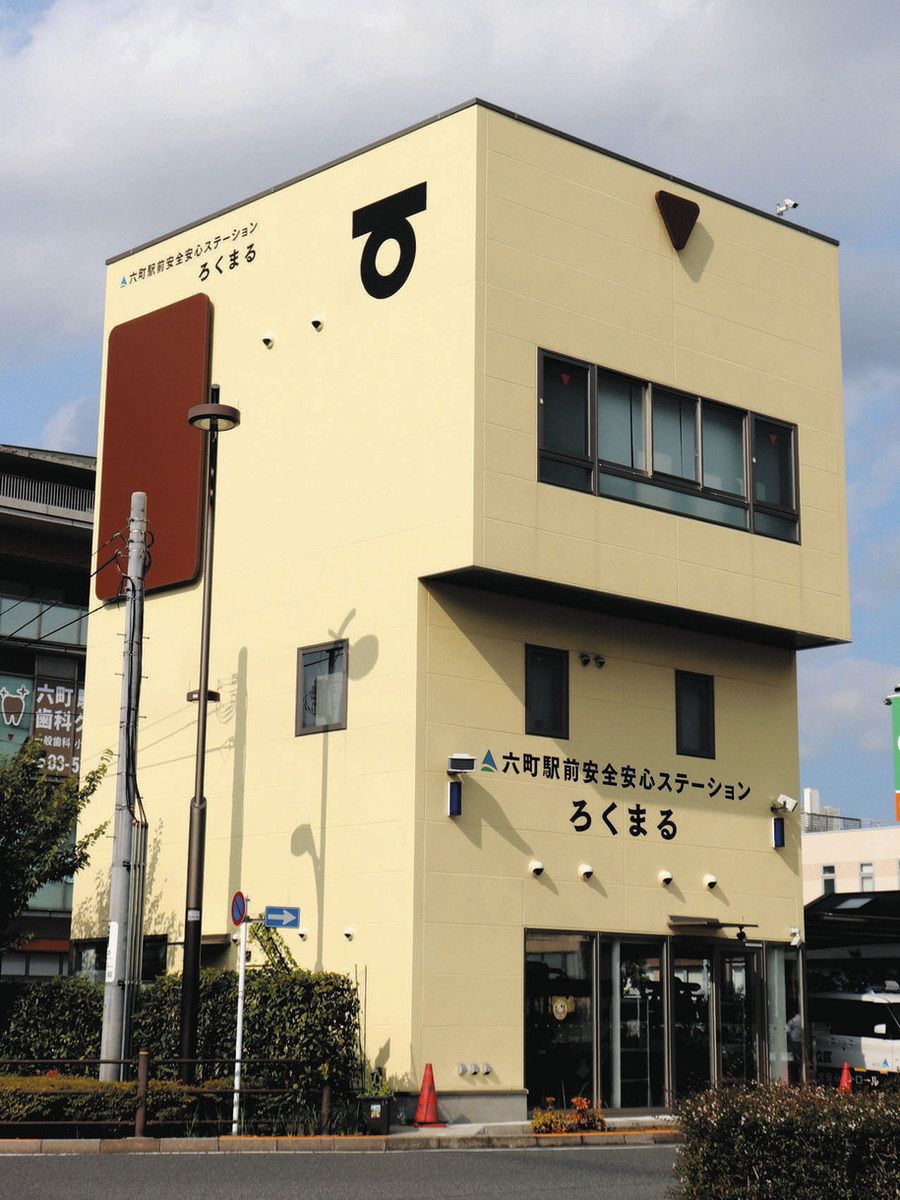 東京都足立区のつくばエクスプレス六町(ろくちょう)駅前に、区が運営する「六町駅前安全安心ステーション」がある。建物の壁には耳や鼻が付いていて、まるで犬の顔のよう。「ろくまる」の愛称で住民に親しまれている。勤務する警察OBの「ろくまる隊員」と住民が協力して救命活動に当たったケースもあり、地域の安全を支えている。(細川暁子)