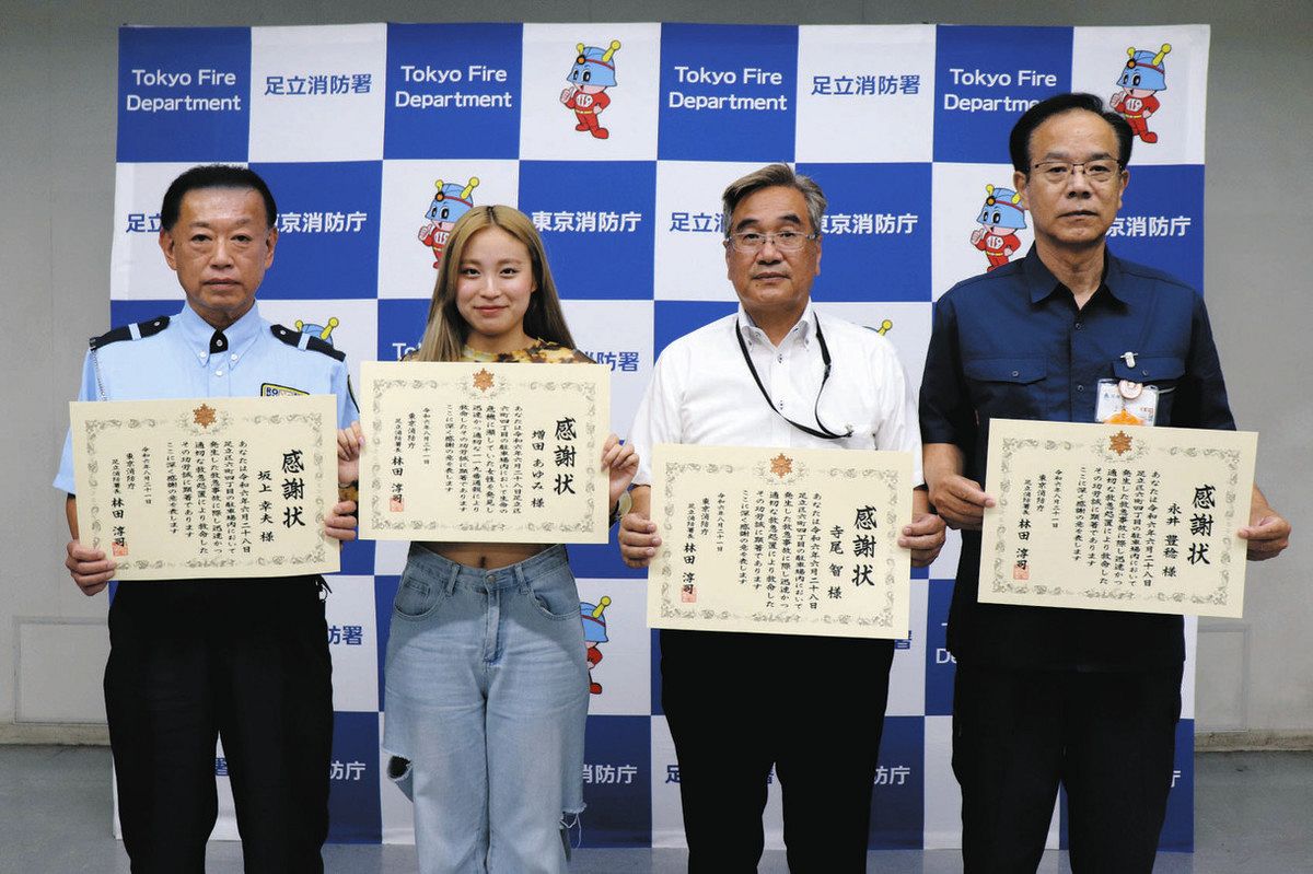 足立消防署は8月21日、連携して女性を救命したとして、坂上さんや増田さんら4人に感謝状を手渡した。坂上さんは「命をつなぐことができて本当に良かった」と話していた。