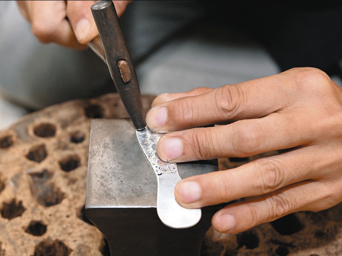 銀を巡る一番古い記憶は3歳のころ。「銀をならしている祖父のひざの上に乗せられてね。そうっとたたくトントンという音が心地よくて、子守歌のようだった」。子守歌のような槌の音は、銀への目覚めでもあった。