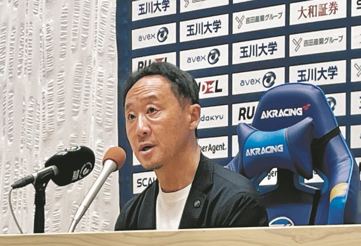 鹿島アントラーズ戦を振り返るFC町田ゼルビアの黒田剛監督=18日、MUFG国立で