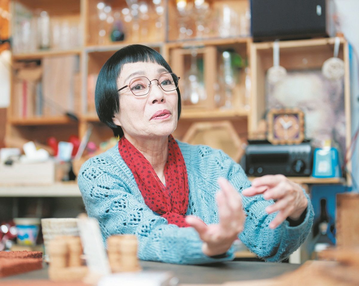 製品作りなどについて話すNPO法人RE機構の清野真里恵理事長=東京都墨田区で(木戸佑撮影)
