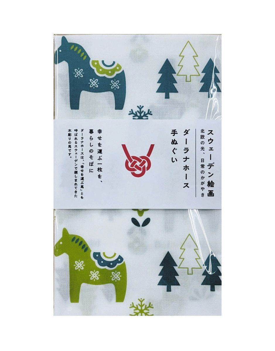 メッシュトート(1650円)は通気性に優れた素材でスポーツやサウナなど幅広いシーンで活躍。サコッシュ(1100円)とのセット使いもおすすめ。贈り物に便利な「のし」付きの手ぬぐい(1200円)も好評だ。北欧らしい柔らかな表情と色合いのイラストがポイントで、午(うま)年の1年を彩るのにぴったりのアイテムになりそう(それぞれ数に限りあり)。