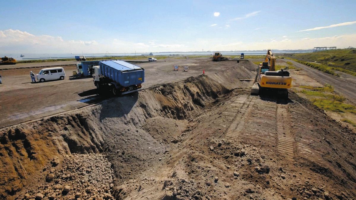 焼却灰が運び込まれる最終処分埋立地(東京都環境局提供)