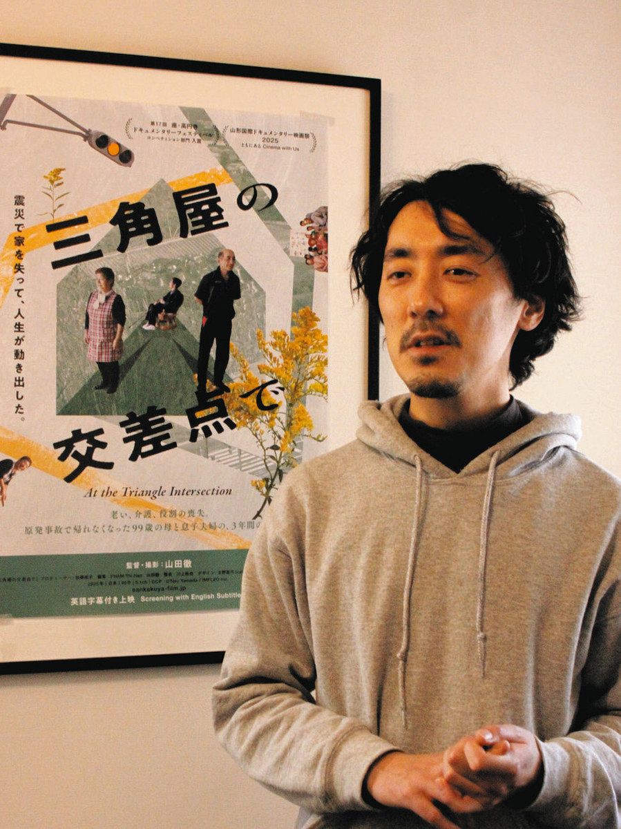 福島第1原発事故を受け、福島県いわき市で避難生活を送る高齢者の一家を3年にわたって記録したドキュメンタリー映画「三角屋の交差点で」の上映が4日、東京都中野区の「ポレポレ東中野」で始まる。故郷や生業(なりわい)を奪われた後の家族の日常と向き合った山田徹監督(42)は「原発事故は、街だけでなく、誰が誰であるかということも崩していった」と語る。(福田真悟)